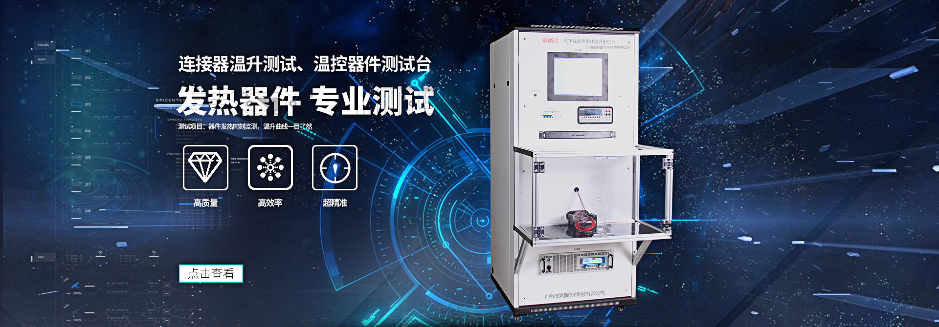 廣州市榮鑫電子科技有限公司坐落于美麗的花城廣州,公司自2002年成立以來,憑借雄厚的技術(shù)實(shí)力和速捷的配套生產(chǎn)能力,以及良好的信譽(yù),贏得了全國多家著名企事業(yè)單位的青睞。公司現(xiàn)推出八大系列產(chǎn)品:溫度溫升測試儀系列、產(chǎn)品安全測試系列、負(fù)載柜系列、電容器測試系列、鎮(zhèn)流器、觸發(fā)器測試系列、LED燈具測試系列、電機(jī)、壓縮機(jī)測試系列、家電測試系列,供客戶選擇。 一直以來我們專注高端產(chǎn)品,拒絕平庸,致力打造智能、人性化的檢測設(shè)備,以客制化定制為服務(wù)中心,理性的引用客戶的要求與建議,滿足客戶需求為己任。同時(shí)我們在經(jīng)營理念上:以精、誠的精神為方針,以為客戶提供先進(jìn)高端產(chǎn)品與優(yōu)質(zhì)服務(wù)為宗旨,從而與客戶取得共贏!這都源于我們的定制服務(wù)。公司擁有專業(yè)的研發(fā)團(tuán)隊(duì)、專業(yè)的銷售團(tuán)隊(duì)及專業(yè)的售后服務(wù)團(tuán)隊(duì),...